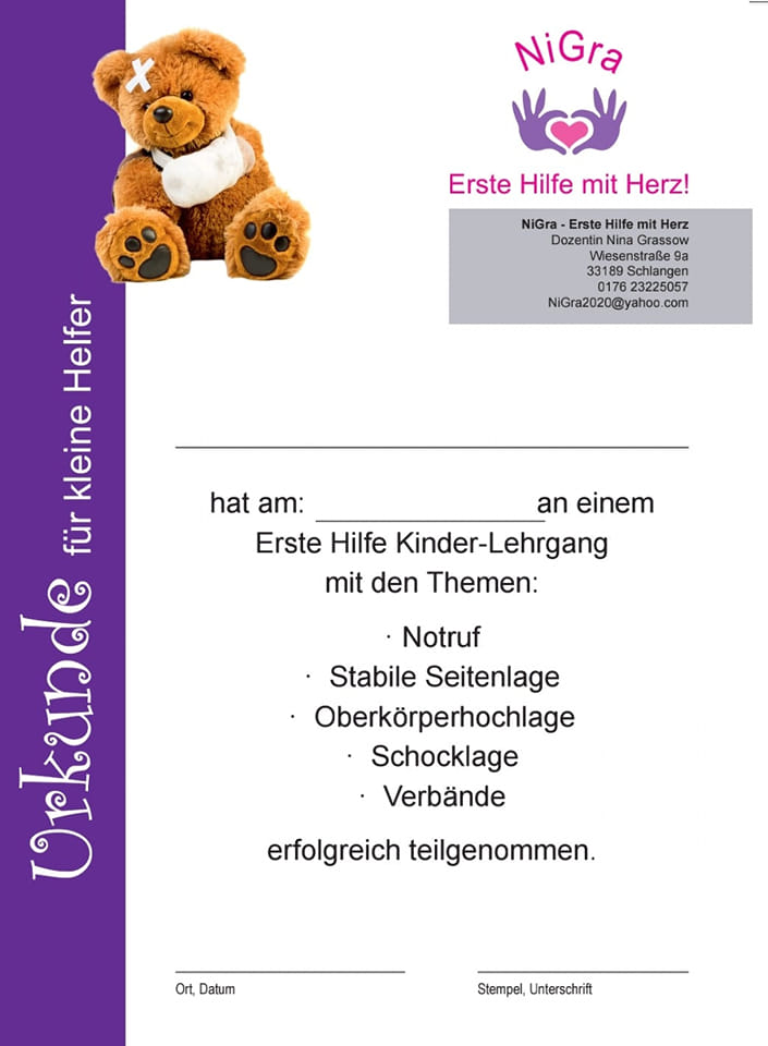 Spielerisch Ängste nehmen und Mut machen Erste Hilfe zu leisten ist mein Motto.